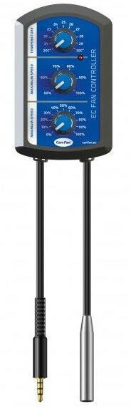 Az intelligens Can-Fan EC controller hőmérséklet- és fordulatszám-szabályozásra készült, a Can-Fan Q-Max EC vagy Max-Fan Pro sorozat ventilátorainak fordulatszámát vezérli. A controller hőmérséklet-érzékelővel és 4 m-es kábellel rendelkezik, 3,5 mm-es, 3 pólusú jack csatlakozóval. A beállított minimum és maximum hőmérséklet alapján automatikusan szabályozza a fordulatszámot.